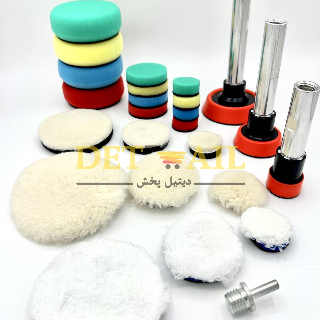 این مجموعه یک پک کامل24عددی و بصرفه برای دستیابی به مناطق باریک مانند آینه های بغل ، دستگیره ها ،ضربه گیرها و … زمانی که از دستگاه روتاری استفاده می کنید به کار می رود. با استفاده از شفت فرعی ، با اطمینان می توانید بدون آسیب رساندن به رنگ ، این مناطق را صیقل دهید.